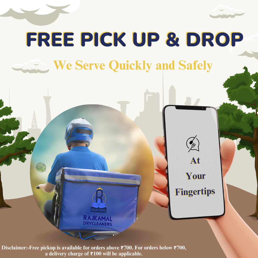 At Rajkamal Drycleaners, we take convenience to the next level with our free pickup and drop service:
